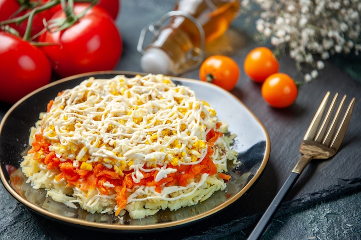 Я начну с приготовления слоеного салата. Это необычное, но привлекательное сочетание гороха, сметаны и моркови. Аккуратная подача сделает его подходящим для праздничного застолья.