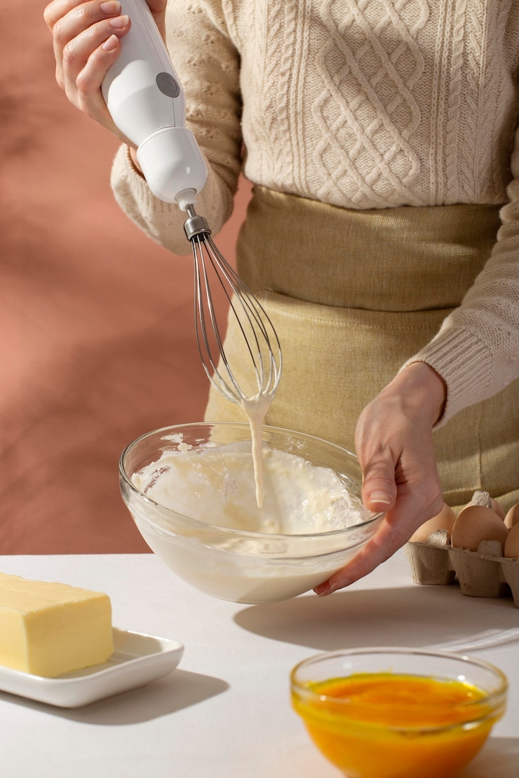 - Сладкие кристаллы растворяются при смешивании сахара с кефиром и последующем взбивании венчиком.