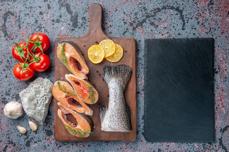 - Подготовьте рыбу: очистите её и нарежьте на куски толщиной 7–10 см.