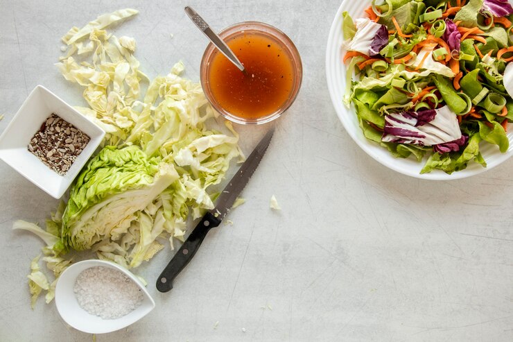 Заправьте диетический салат маслом, смешанным с любимыми специями и солью. В качестве основы можно использовать рафинированное масло виноградной косточки, которое отличается своим уникальным составом.