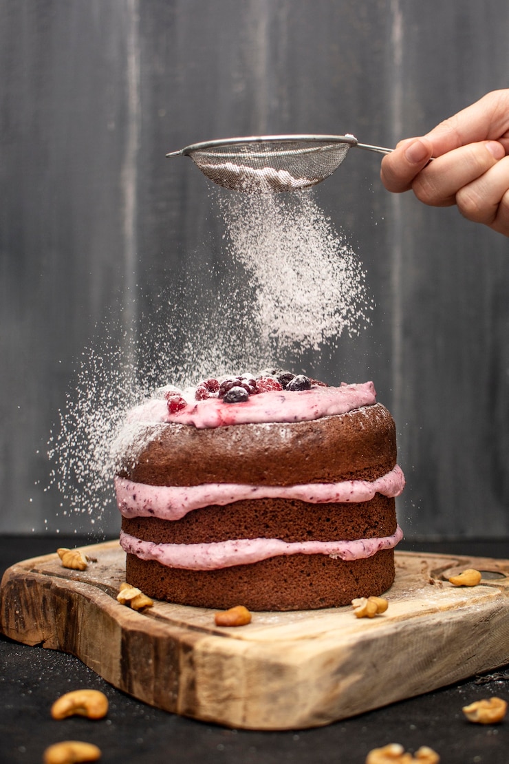 - Чтобы крем затвердел, поместите торт в холодильник.