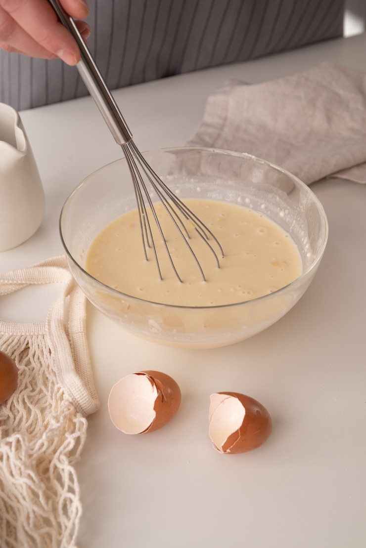 Необходимо разогреть духовку до 180 градусов. Белки нужно отделить от желтков, чтобы затем их можно было взбить. В белки добавляют соль и небольшое количество лимонного сока. Взбивание производится удобной насадкой миксера. Сахар добавляют к желткам, и их также взбивают миксером. Затем к желткам добавляют взбитые белки и аккуратно перемешивают.