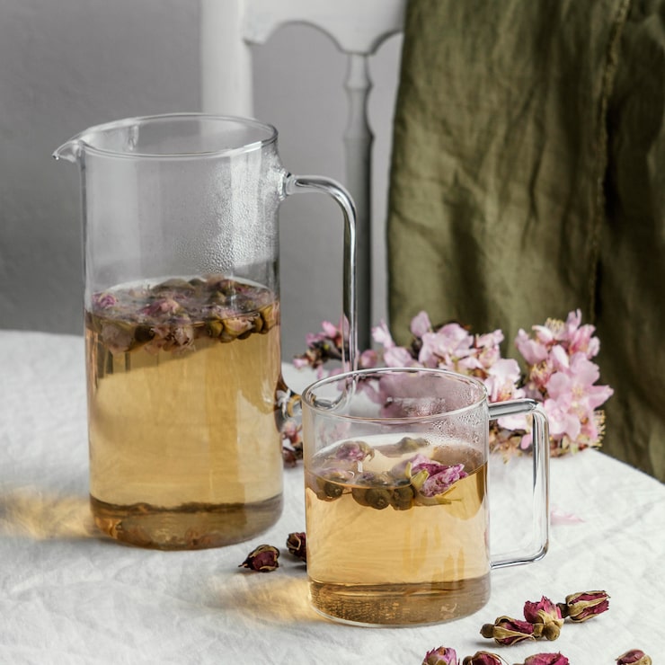 - в стеклянную емкость следует поместить 10 граммов ферментированного иван-чая (копорского чая;