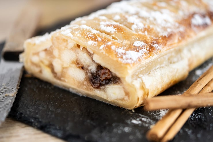 Этот австрийский десерт в греческой интерпретации обладает насыщенным ароматом и отличается широкой палитрой вкусов. Для приготовления рекомендуется использовать готовое тесто.