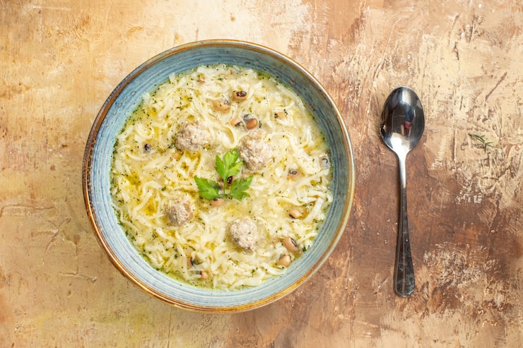 Рисовый суп с фрикадельками готов к подаче.