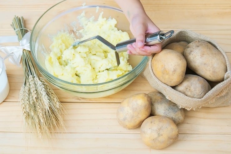 - Картофель можно отварить и превратить в пюре, используя подходящий метод.