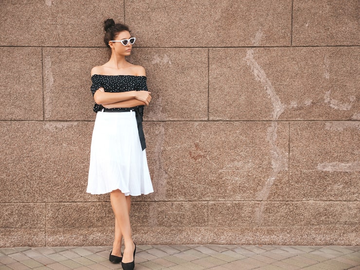 Кроссовки на платформе или слипоны станут отличным дополнением к спортивному стилю. Юбка длиной до колена, подходящая для рабочей обстановки, будет хорошо сочетаться с балетками или туфлями на устойчивом каблуке.