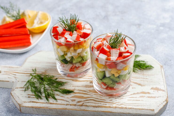 Необычные салаты с маринованными огурцами прекрасно дополнят любой праздничный стол, особенно если к ним предусмотрены крепкие алкогольные напитки. Для их приготовления можно использовать как огурцы, приготовленные в домашних условиях, так и покупные консервированные овощи.
