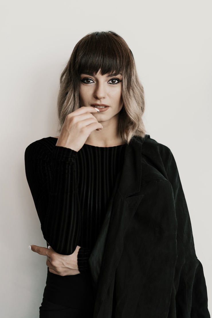 - Чтобы сбалансировать широкую линию лба и узкие скулы, можно использовать асимметричную прическу с косой челкой.