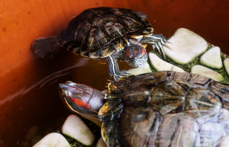Совет. На время кормления отсаживайте питомца в отдельную емкость с теплой водой (22-28 °С). Черепаха использует её как туалет. Кроме того, в аквариуме не будут скапливаться остатки трапезы.