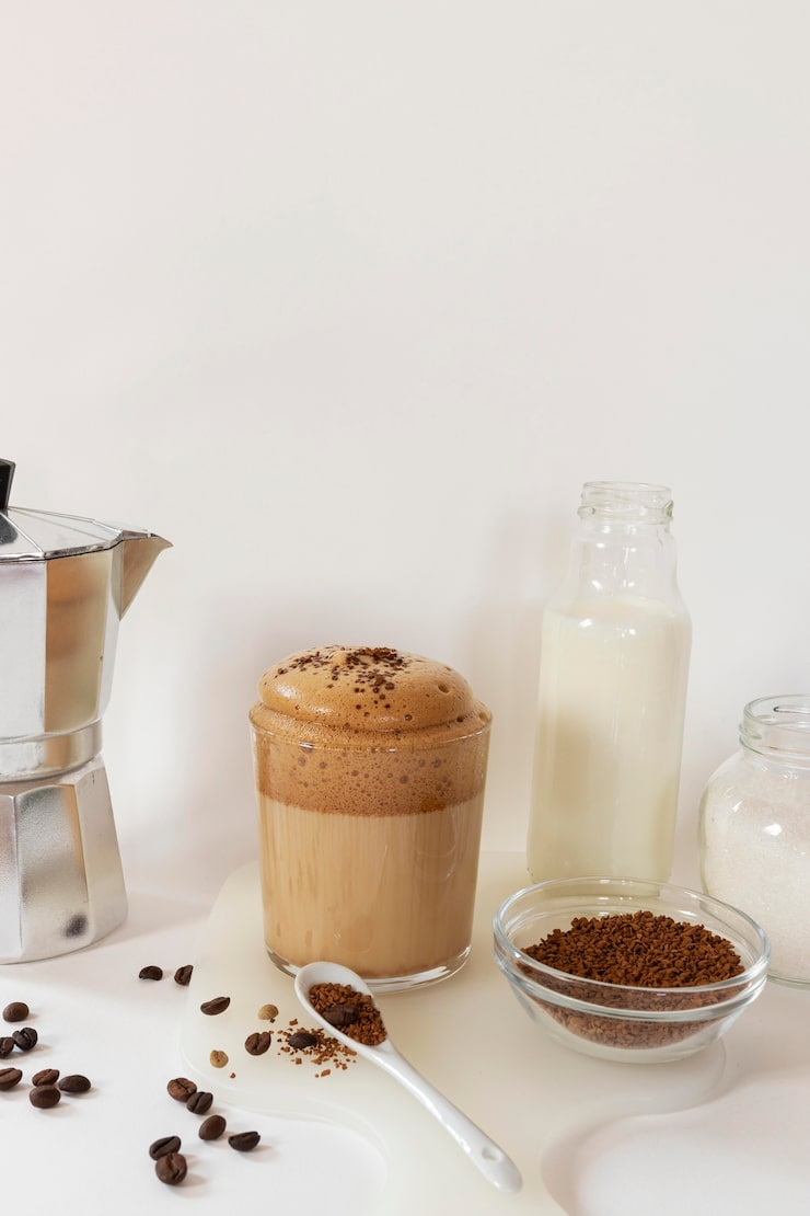 Обычный кофе, в которые добавлено молоко, может быть сварен как из цельных кофейных зерен, так и сделан при помощи растворимого продукта. Состав напитка, его пищевая ценность и калорийность будут отличаться.