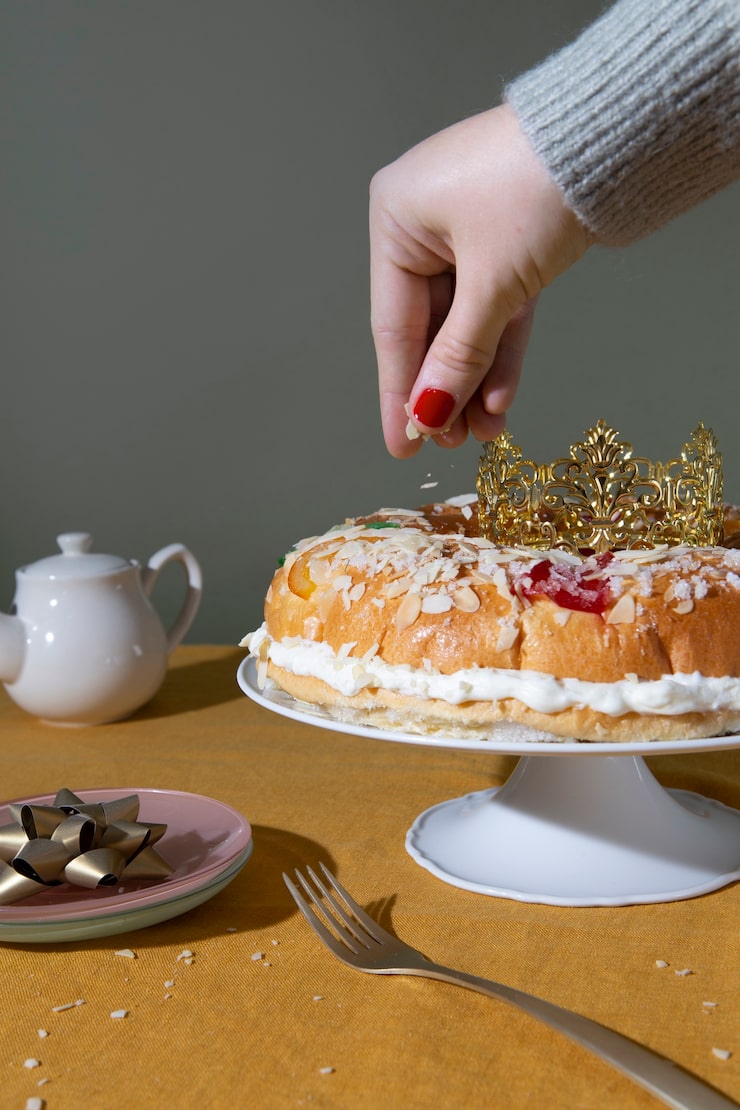 - Сделать для торта мастику, раскатать кусочки в виде треугольников. Поместить их на торт, слегка наслаивая друг на друга. В качестве дополнительного украшения использовать бусинки, посыпку или другой кондитерский декор.