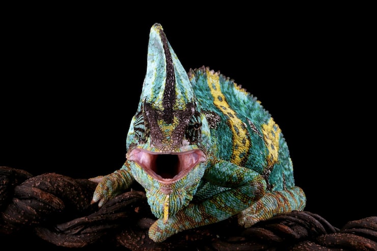 - Самцы хамелеонов имеют более яркую внешность. Многие носят «украшения» на мордочке и голове в виде отростков, гребней или выступов.
