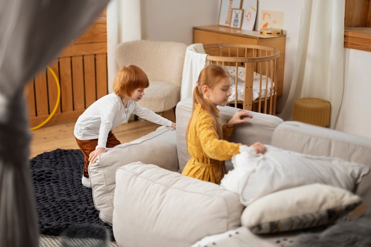 Когда в семье двое детей, родителям нередко требуется организовать спальное место таким образом, чтобы оно не перегружало пространство комнаты и позволяло детям играть.