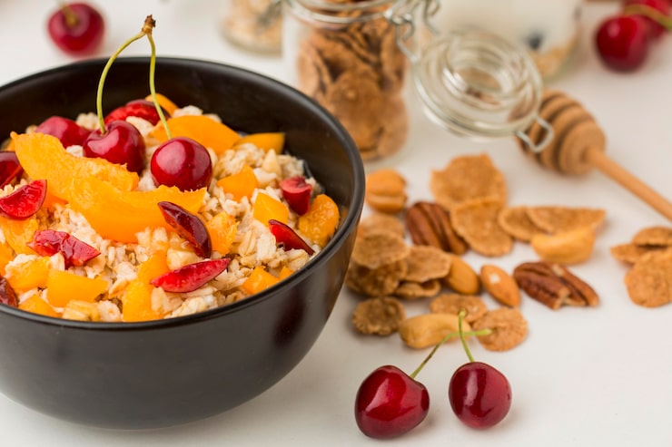 - Оставить диетический вариант из «Геркулеса» для набухания. Спустя полчаса подать на завтрак с натуральным йогуртом или кефиром.