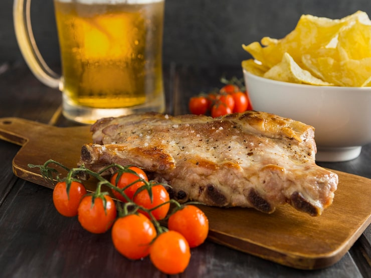 Подавать мясо стоит со стаканом холодной воды, лучше всего со льдом. Хорошим гарниром будет салат, чечевица или фунчоза с овощами.