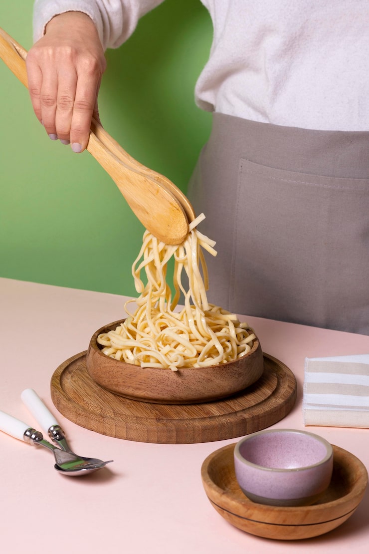 В качестве основы для блюд можно использовать различные виды лапши: пшеничную, например, удон, а также тонкую рисовую или гречневую, известную как собу).