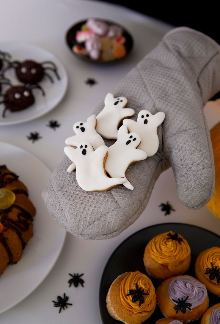 Печенье в большинстве своем относится к несложным в приготовлении десертам, это самые простые сладости на Хэллоуин. С их приготовлением смогут справиться даже дети, им особенно понравится творческий процесс создания забавных мумий или тыковок, наполненных тыквенным пюре.