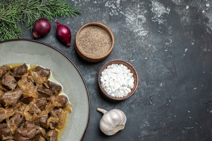 Для приготовления наиболее изысканного блюда из говяжьей печени ее следует обжаривать в смальце. В качестве специй используют хмели-сунели, чеснок, лавровый лист и ароматный молотый перец.