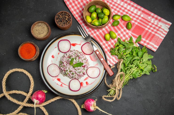 - 5 средних плодов редиса;