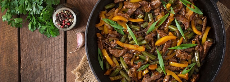 Приготовление мяса, тушеного на сковороде, представляет собой более быстрый способ создания блюда, похожего на гуляш. Для предотвращения пригорания говядины рекомендуется использовать сковороду с антипригарным покрытием.