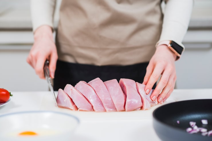 - Порезать мясо ломтиками.