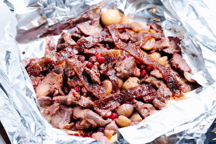 - Выпекается баранина под фольгой.