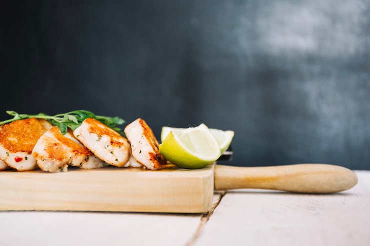 - Филе обрабатывается стандартным способом. Необходимо удалить все кости из мяса, затем нарезать его на куски. Продукт слегка сбрызгивается лимонным соком, приправляется специями и выдерживается в закрытой емкости в течение 15 минут.