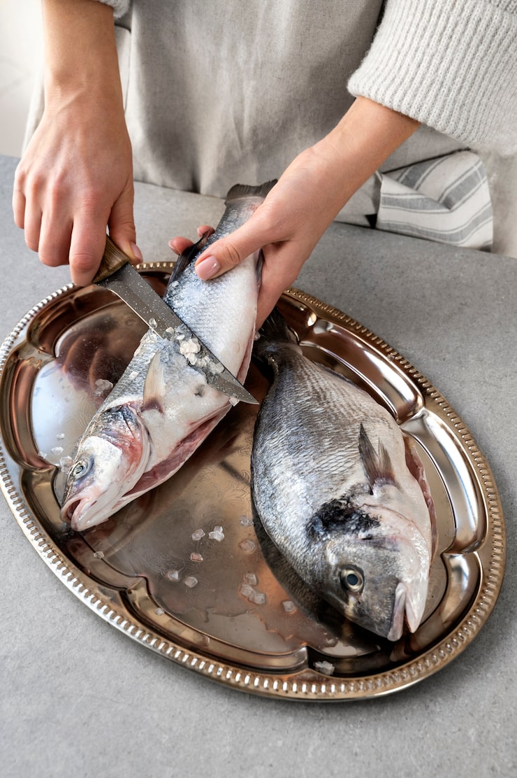 - Любую рыбу, вне зависимости от её вида, разрезают вдоль хребта, после чего удаляют крупные кости.