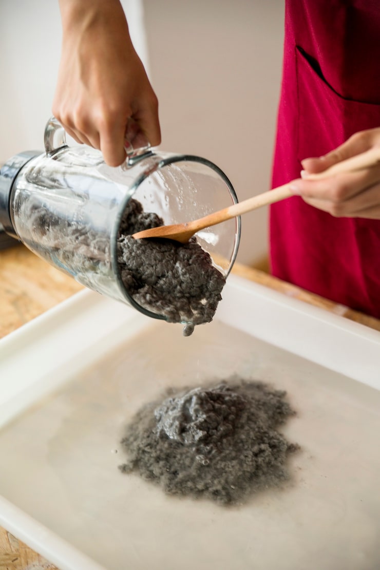 Наполните ведро теплой, очищенной водой. Добавьте дрожжи из пакета. Тщательно перемешайте, затем добавьте сахар. Поставьте емкость в теплое место и дайте настояться на 2–3 часа.
