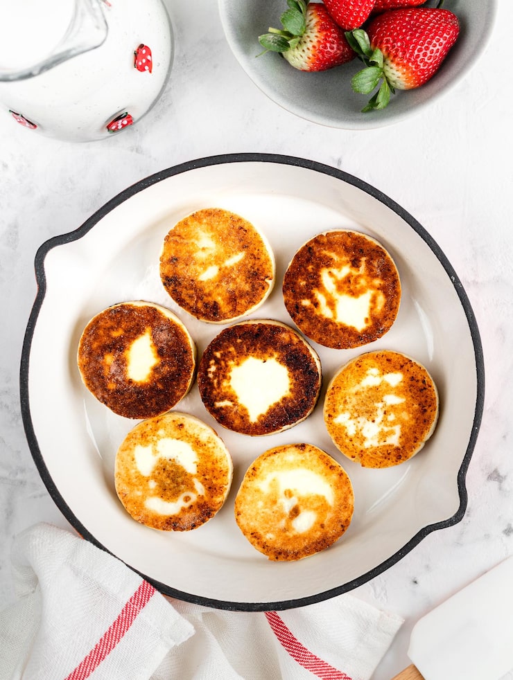 Два способа приготовить пышные творожные оладьи на кефире: в духовке и на сковороде